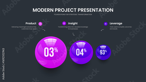 Advertising Strategy 3 Element Diagram Slide Layout. Marketing Introduction Three Option Graph Presentation Design. Science Insight Slideshow Template Vector Illustration.