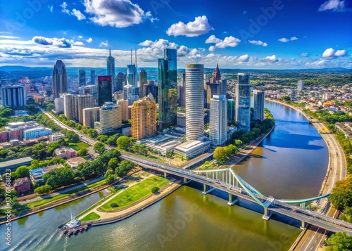 Aerial Brisbane Cityscape: Drone Photography of River & Skyline