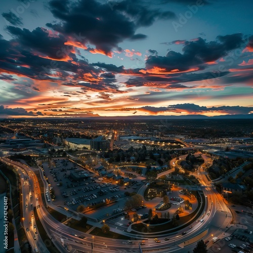 Aerial drone photo - City at sunset