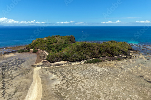 Aerial Drone View of Tanga Island at Low Tide, Nosy Be, Madagascar