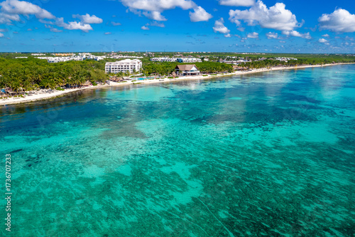 Aerial Drone View of Xcalacoco Beach in Playa del Carmen, Quintana Roo
