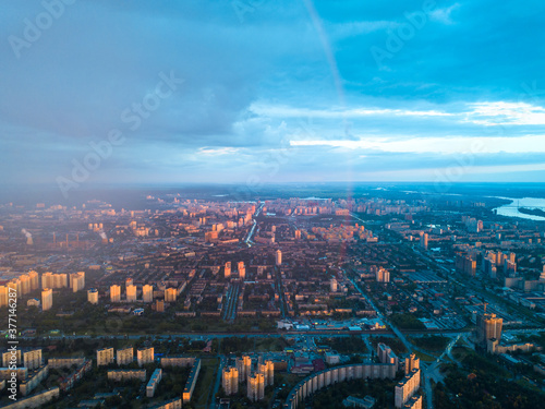 Aerial drone view. Rain over Kiev city.