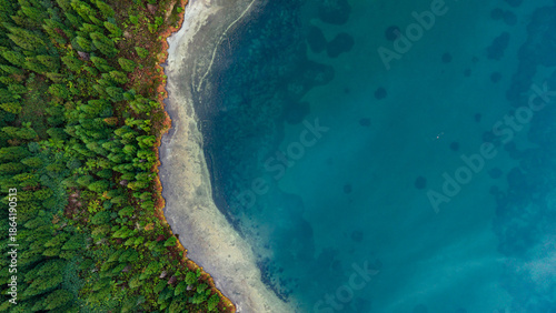 Aerial lake view, in Sete Cidades, traveling Sao Miguel, Azores islands.