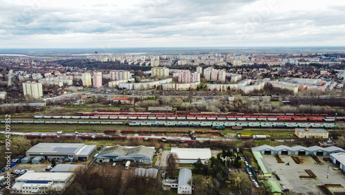 Aerial panorama of industrial district and residential cityscape in dunaújváros