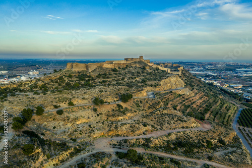 Aerial sunset panorama view of Sagunto (Sagunt) fortress near Valencia Spain