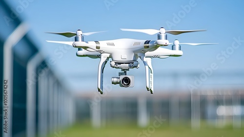 Aerial Surveillance Drone Monitoring Prison Yard from Above