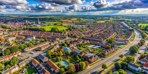Aerial View of Aylesbury Town, Buckinghamshire, UK: Houses, Roads & Businesses