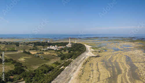 Aerial view of Baleines lighthouse at low tide