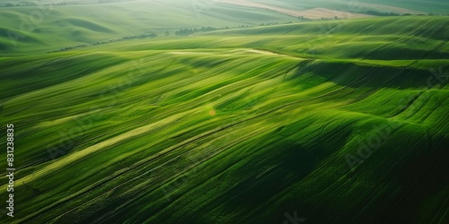 aerial view of big green fields on sunny day