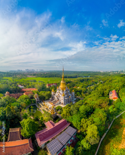 Aerial view of Buu Long Pagoda in Ho Chi Minh City. A beautiful buddhist temple hidden away in Ho Chi Minh City at Vietnam