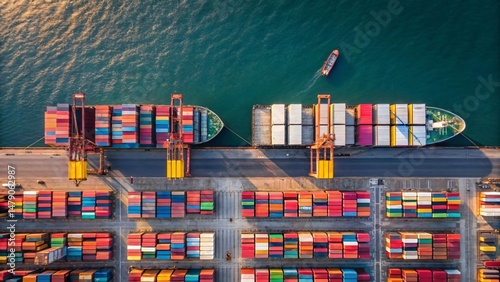 Aerial View of Cargo Ships at Port Container Terminal Global Trade and Shipping