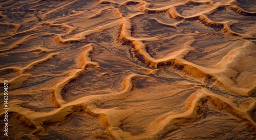 Aerial View of Desert Sand Dunes: Orange and Brown Textured Landscape