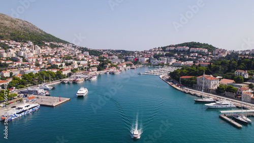 Aerial View of Dubrovnik Port with Boat on Adriatic Sea Croatia