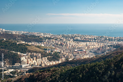 Aerial view of Genoa and the Marassi neighborhood seen from surrounding hills