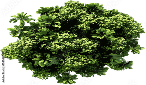 Aerial view of isolated tropics greenery trees cut out, tropical forest canopy, nature background, eco tourism, exotic landscape, aerial tropical trees, lush green scenery, island view