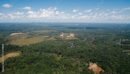 Aerial view of land clearing in the Amazon rainforest, highlighting environmental impact
