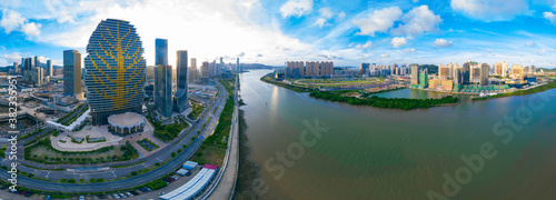 Aerial view of Macau, China and Zhuhai Hengqin Free Trade Zone