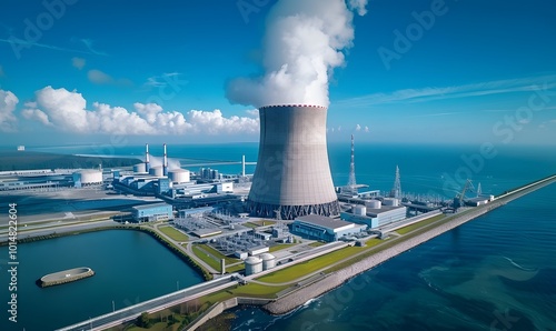 Aerial View of Nuclear Power Plant on Coastal Shoreline
