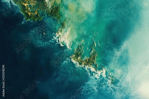 Aerial view of rugged coastline with turquoise waters and lush greenery