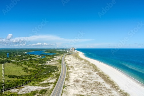 Aerial view of the beach in Gulf Shores, Alabama