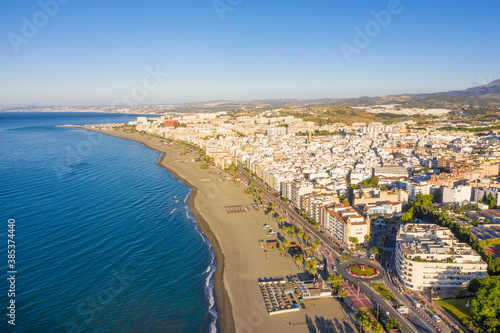 Aerial view of the coast along the city of Estepona, Spain.