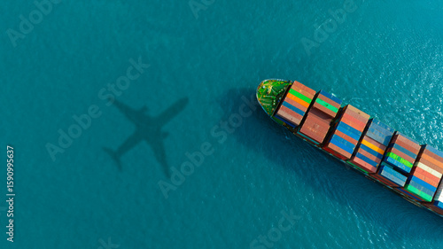 Aerial view of the freight shipping transport system cargo ship container. international transportation Export-import business, logistics, transportation industry concepts