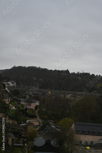 Aerial view of the historic European city center with old buildings, church towers, and green hills. Perfect for travel agencies, tourism marketing, architecture firms, and hospitality branding. The p