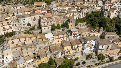 Aerial view of the roofs, houses and apartments, ideal for the concept of an Italian hilltop village nestled among the mountains. This is the historic center of Ragusa Ibla, Sicily, Italy.