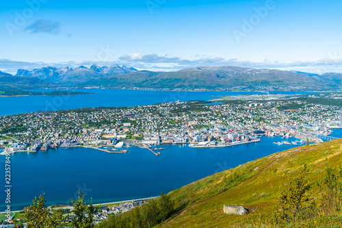 Aerial view of Tromso and Tromsoysundet strait in Norway