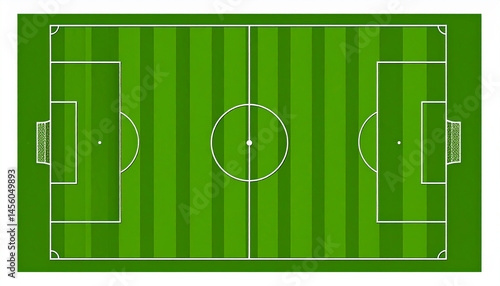 Aerial view of vibrant green soccer field featuring marked lines, goals, and center circle, perfect for sports enthusiasts and event planners