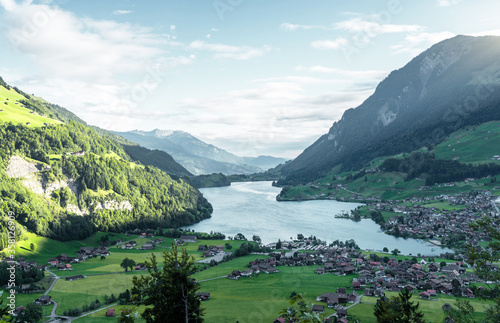 Aerial view on Lungernsee lake, Switzerland, Europe
