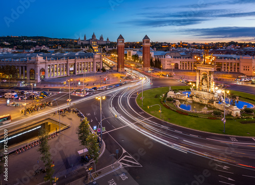Aerial View on Placa Espanya and Montjuic Hill with National Art