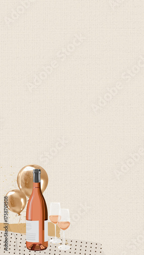 Aesthetic champagne celebration phone wallpaper, paper textured background