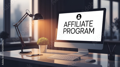 "AFFILIATE PROGRAM" text on computer screen in modern office workspace