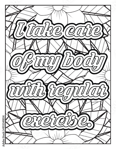 Affirmation Quotes with Mandala pattern. Hand drawn with black and white lines. Motivational quotes coloring page. Positive affirmations for kids & students.
