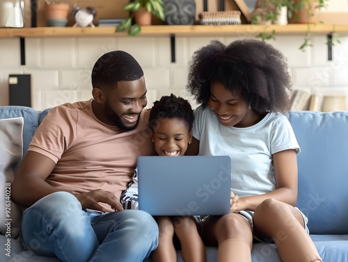 African American family working on a laptop while