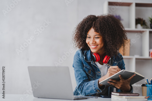 african american female students studying online using laptop online meeting