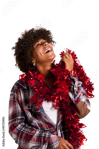 african american girl with christmas ornaments