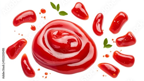 Against a white background, a ketchup splash is seen floating in the air, as the tomato condiment bursts into an incredible soaring flight