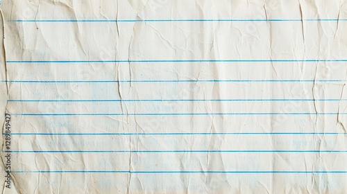 Aged and worn notebook paper with faded blue lines and a creased texture.