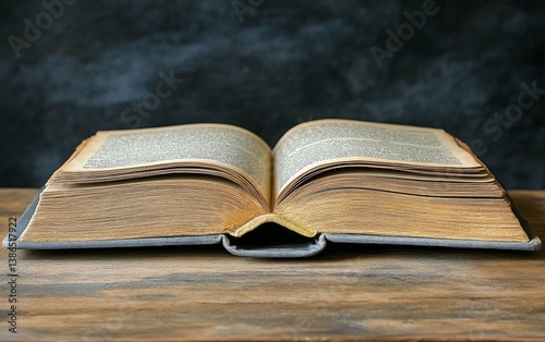Aged Book Open on Wooden Table