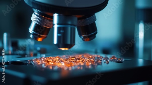 Aging cells viewed through a microscope in a laboratory. Featuring cellular aging and molecular breakdown