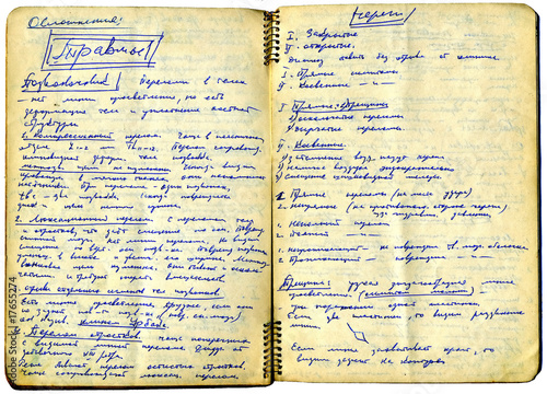 aging copy-book with text on white background