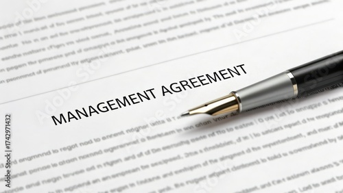 agreement owner management interest concept. Management agreement document with a pen on top.