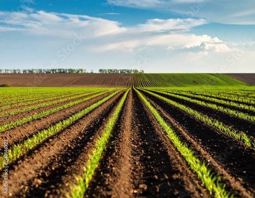 Agricultural field with young sprouts