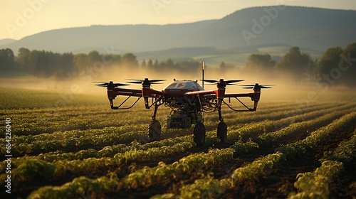Agriculture drone fly to sprayed fertilizer on the fields. smart farmer use drone for various fields like research analysis, terrain scanning technology, smart technology concept.