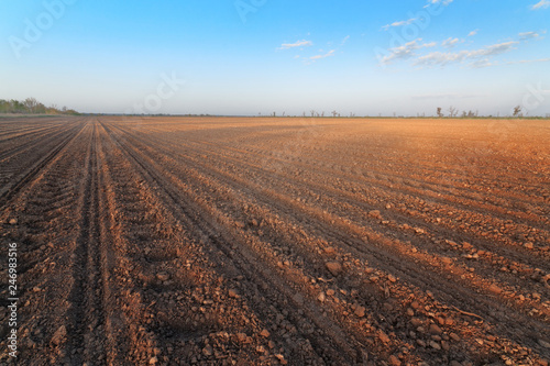 agriculture the land is ploughed to the field / background photo out of the city agriculture