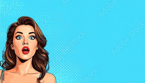 ポップアート背景 驚く女性のコミック調のイラスト 生成AIイラスト