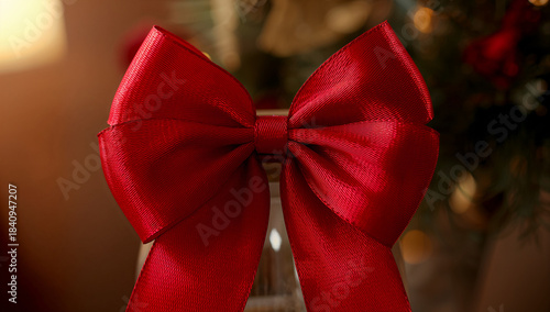 プレゼントシーズンに使いやすい赤いリボンとボウの横長ホリデー背景.生成AI