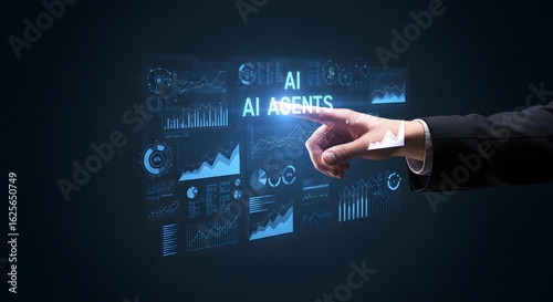 AI Agents: Futuristic Business Technology Concept with Hand Interacting with Data Visualizations